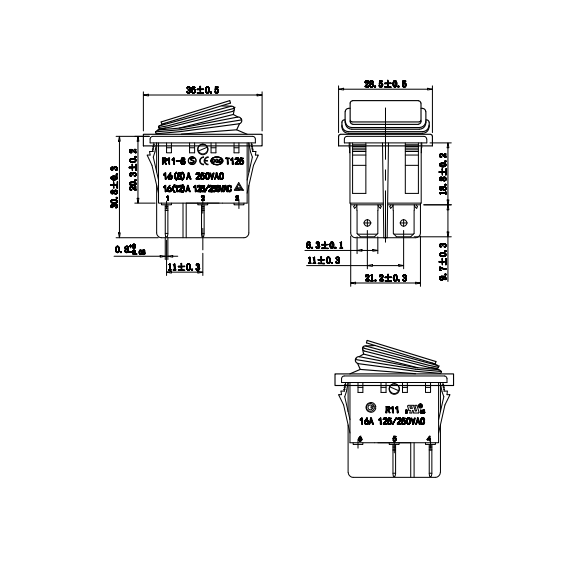 3. Penerangan Produk: Siri R11-8 ialah suis rocker standard, juga dikenali sebagai suis togol atau suis gelombang. Pelbagai gaya tersedia, termasuk pilihan dengan penutup pelindung untuk rintangan habuk dan air, atau struktur kalis habuk dalaman untuk perlindungan yang serupa. Sangat serba boleh, ia digunakan secara meluas dalam pelbagai alatan kuasa, alatan taman dan peralatan pembersihan seperti gergaji meja, pengisar bangku, mesin pemotong rumput elektrik, mesin pencincang cawangan, mesin basuh tekanan tinggi, pembersih vakum basah/kering, dan sama-sama sesuai untuk perkakas rumah, instrumen dan peralatan pejabat.
