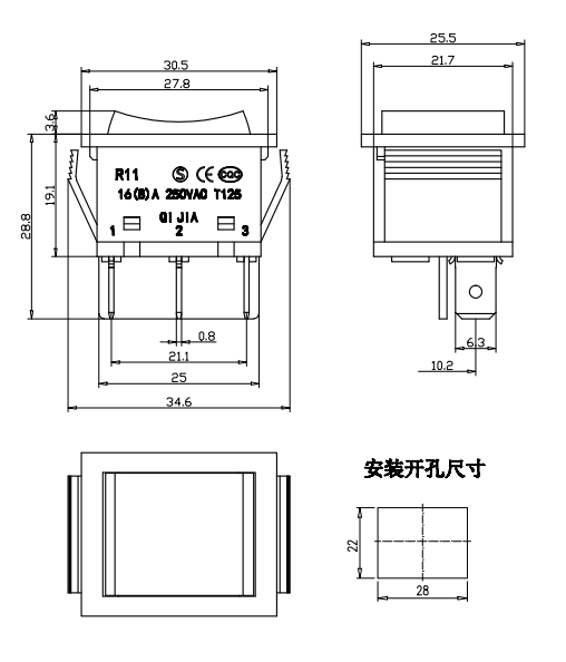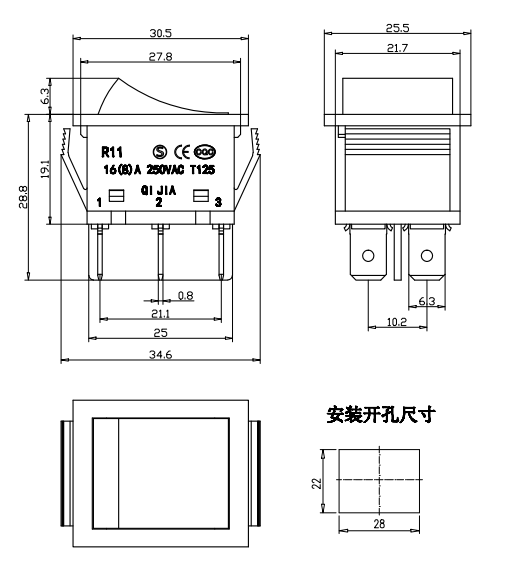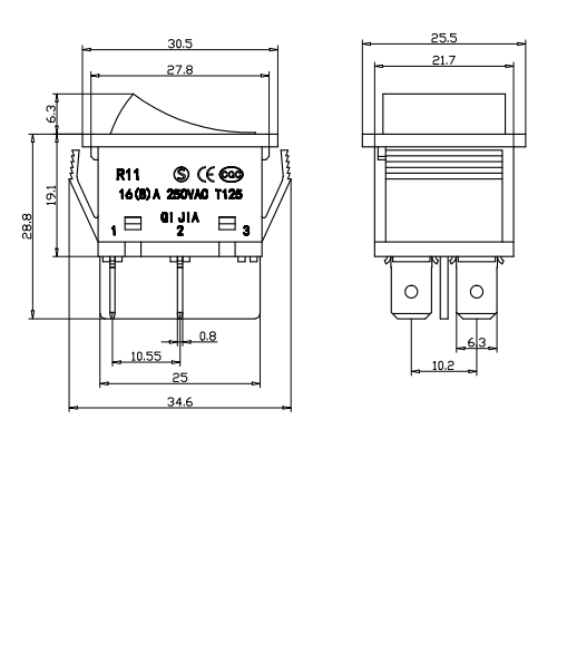 Shanghai Qijia Electronics Co., Ltd. Rumah / Produk / Suis Rocker / Suis Roker R11 / Suis Roker R11-98